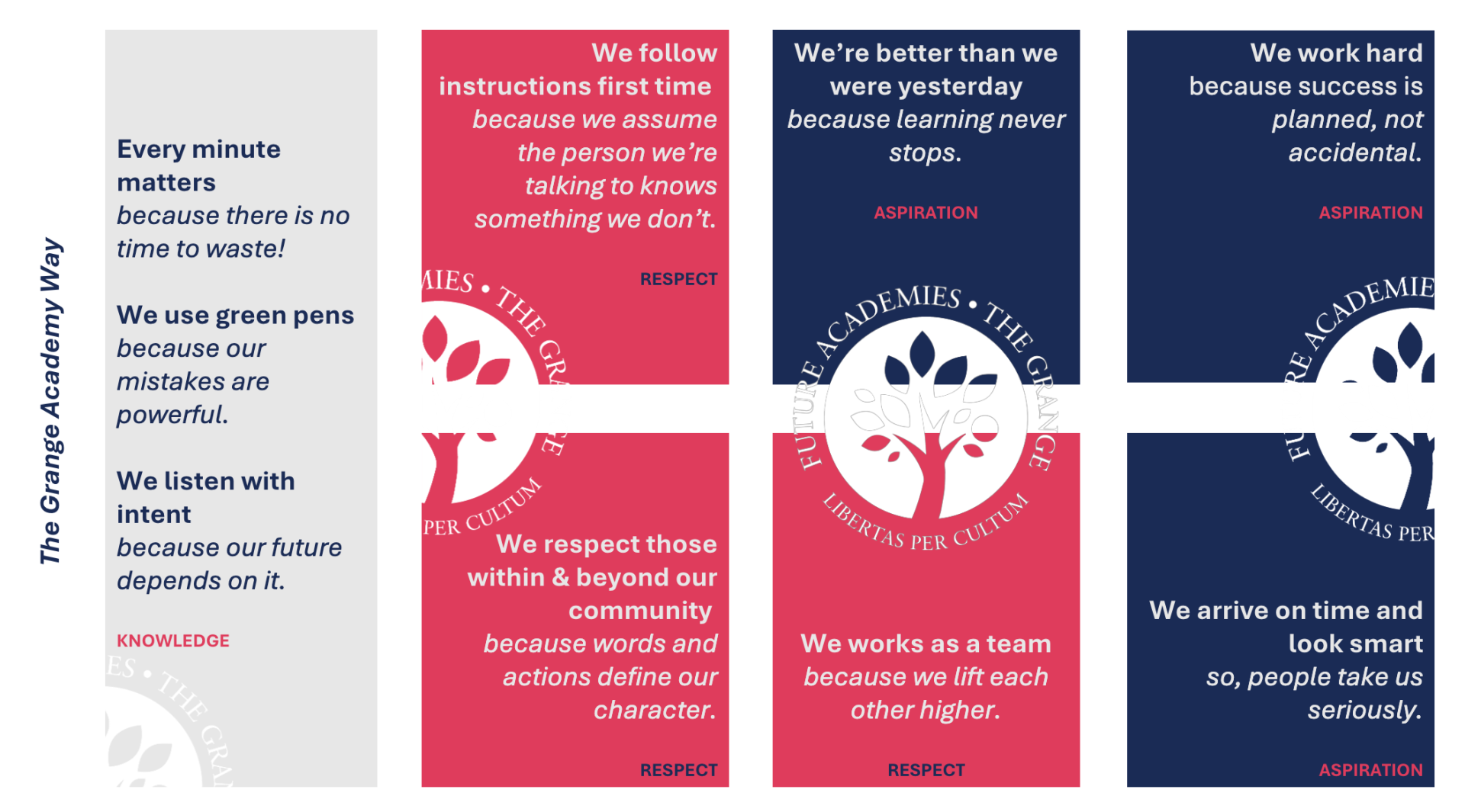 This is what we call 'The Grange Academy Way'. All key stakeholders play a part in ensuring our students experience the best opportunities during their time with us at The Grange. Home School Agreement