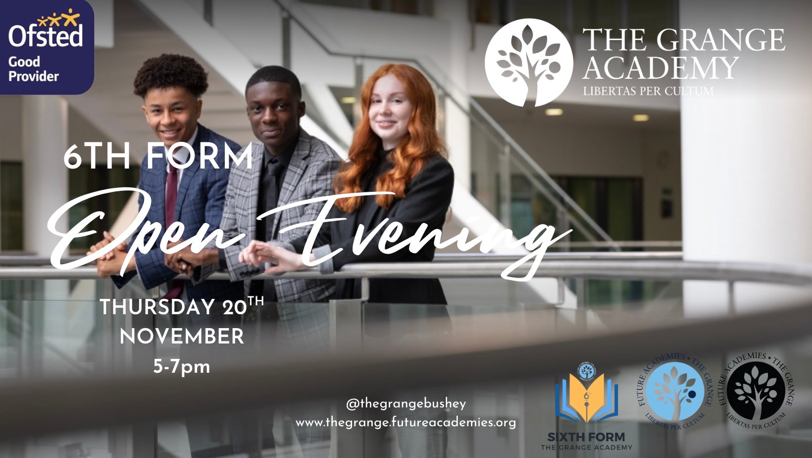 Future-ready? Join us for our 6th Form Open Evening on Thu 20 Nov, 5–7pm. Tour our facilities, meet teachers & students, and explore post-16 pathways. All welcome! Join our TGA community #thegrangeacademy #6thform #openevening